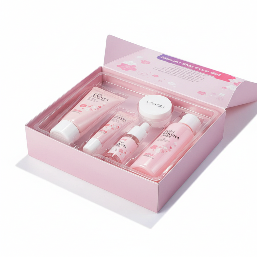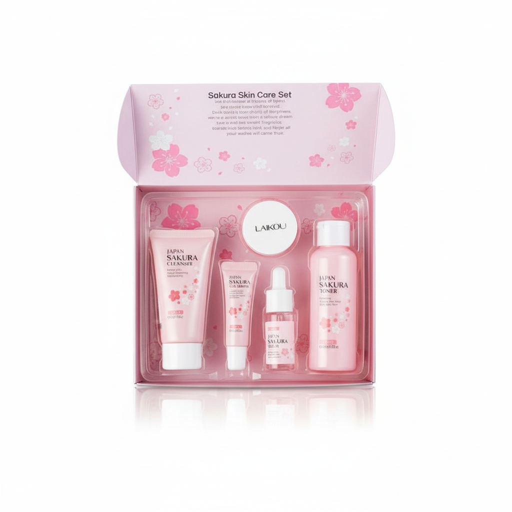 Transformez votre peau avec notre coffret complet infusé à la fleur de cerisier. Hydratation intense, pores resserrés, teint éclatant garanti.